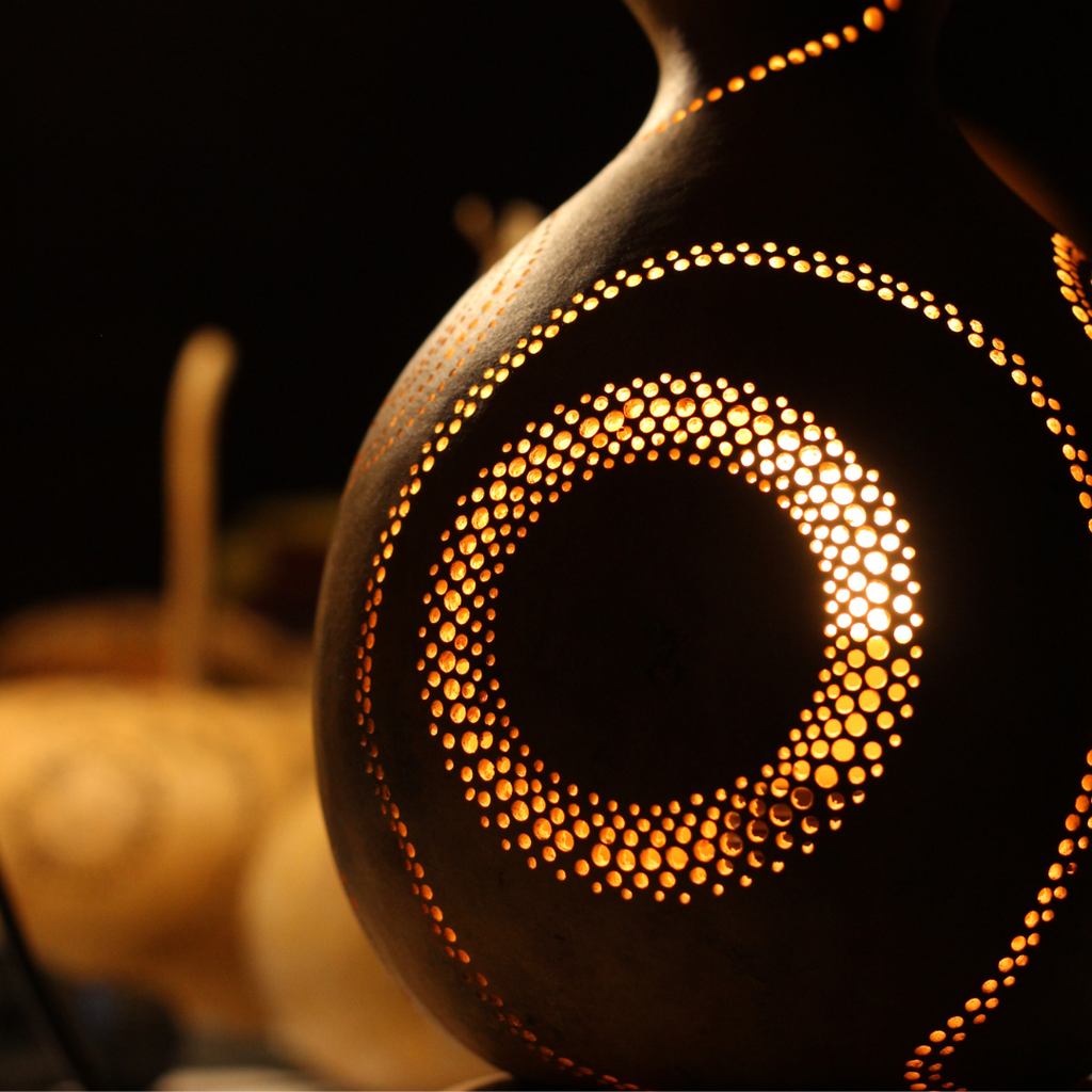 De la calebasse brute à l’objet lumineux, tu découvriras comment ce fruit séché peut devenir une pièce artisanale unique, où la matière naturelle rencontre la lumière.